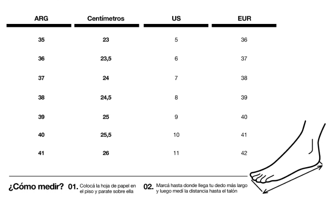 Consulta nuestra tabla de talles para encontrar tu calce ideal